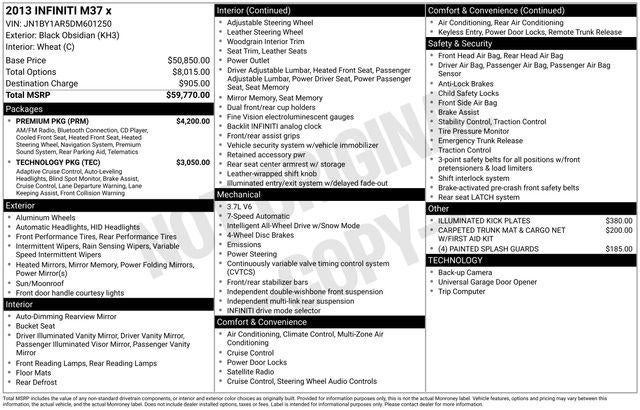 Black Obsidian 2013 INFINITI M37 X 4D Sedan AWD 3.7L V6 DOHC 24V VVEL 7-Speed Automatic