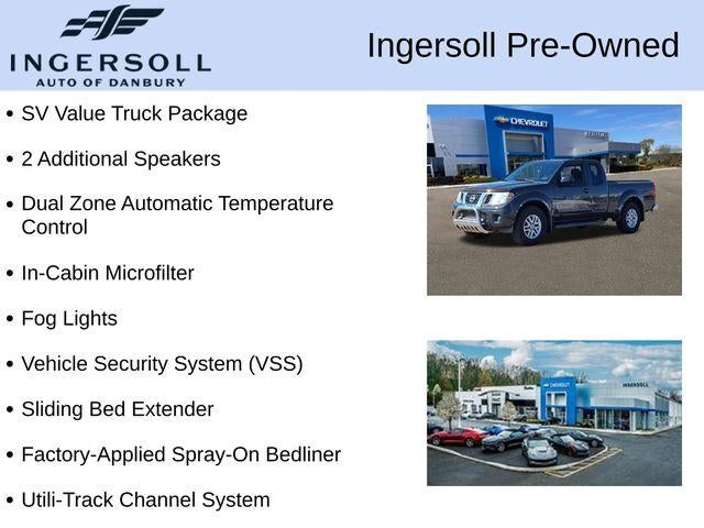 The SV Value Truck Package takes this Frontier to the next level, offering a wealth of premium features that elevate both comfort and convenience. Dual-zone automatic climate control ensures everyone rides in perfect climate-controlled comfort, while the in-cabin microfilter keeps the air fresh. The rear view monitor with rear sonar system provides added confidence when maneuvering, and the Utili-Track channel system offers unparalleled cargo management flexibility.