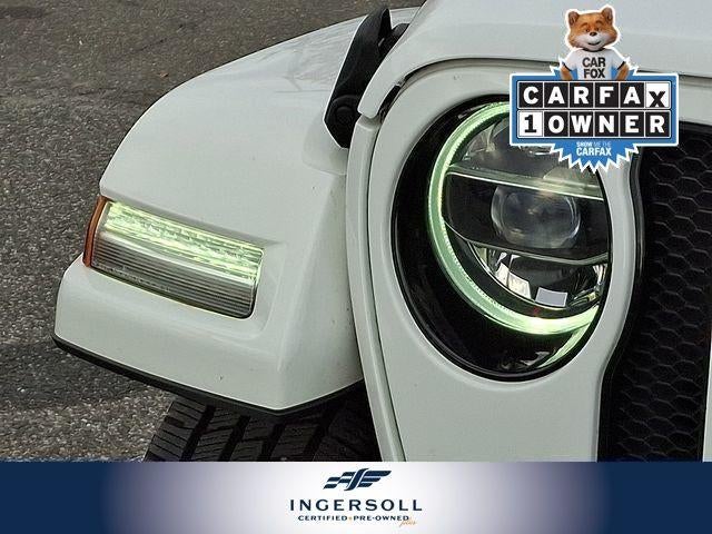 This Wrangler Unlimited Sahara High Altitude is more than just a capable off-roader; it's a refined and luxurious SUV that seamlessly blends rugged performance with premium amenities. The striking white exterior is complemented by the body-colored accents and premium dark exterior details, creating a bold and distinctive appearance.