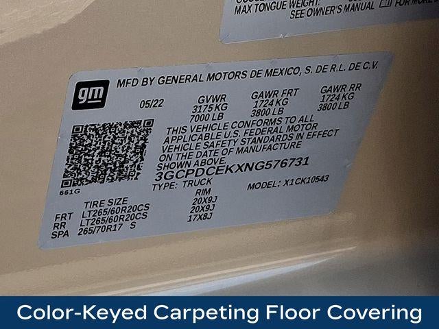 10-Way Power Driver Seat w/Lumbar, 120-Volt Instrument Panel Power Outlet, 3.5 Monochromatic Display Driver Info Center, Apple CarPlay/Android Auto, Auto High-beam Headlights, Auto-Locking Rear Differential, Black Name Plates (LPO), Bluetooth® For Phone, Color-Keyed Carpeting Floor Covering, Compass, Custom Convenience Package, Dark Essentials Package (LPO), Deep-Tinted Glass, Dual Rear USB Ports (Charge Only), Electric Rear-Window Defogger, Electrical Steering Column Lock, Electronic Cruise Control, EZ Lift Power Lock & Release Tailgate, Front Rubberized Vinyl Floor Mats, HD Rear Vision Camera, IntelliBeam Automatic High Beam On/Off, LED Cargo Area Lighting, Manual Tilt Wheel Steering Column, OnStar & Chevrolet Connected Services Capable, Performance Red Recovery Hooks, Power Front Windows w/Driver Express Up/Down, Power Front Windows w/Passenger Express Down, Power Rear Windows w/Express Down, Preferred Equipment Group 2CX, Rear 60/40 Folding Bench Seat (Folds Up), Rear Rubberized-Vinyl Floor Mats, Remote Keyless Entry, Remote Vehicle Starter System, SiriusXM Radio, Standard Tailgate, Theft Deterrent System (Unauthorized Entry), Trailering Package, Wheels: 20 x 9 High Gloss Black Painted Alum, Wireless Phone Projection.