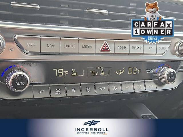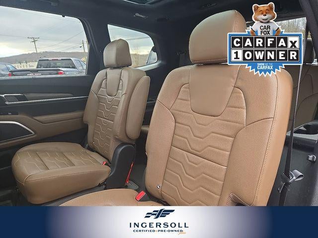 The interior of the Telluride SX is a sanctuary of comfort and convenience. Sink into the luxurious SX Dune Brown Nappa Leather Seats, which are both heated and ventilated for year-round comfort. The Heads-Up Display and premium harman/kardon® audio system elevate the driving experience, while the power liftgate and 110V inverter provide added versatility.
