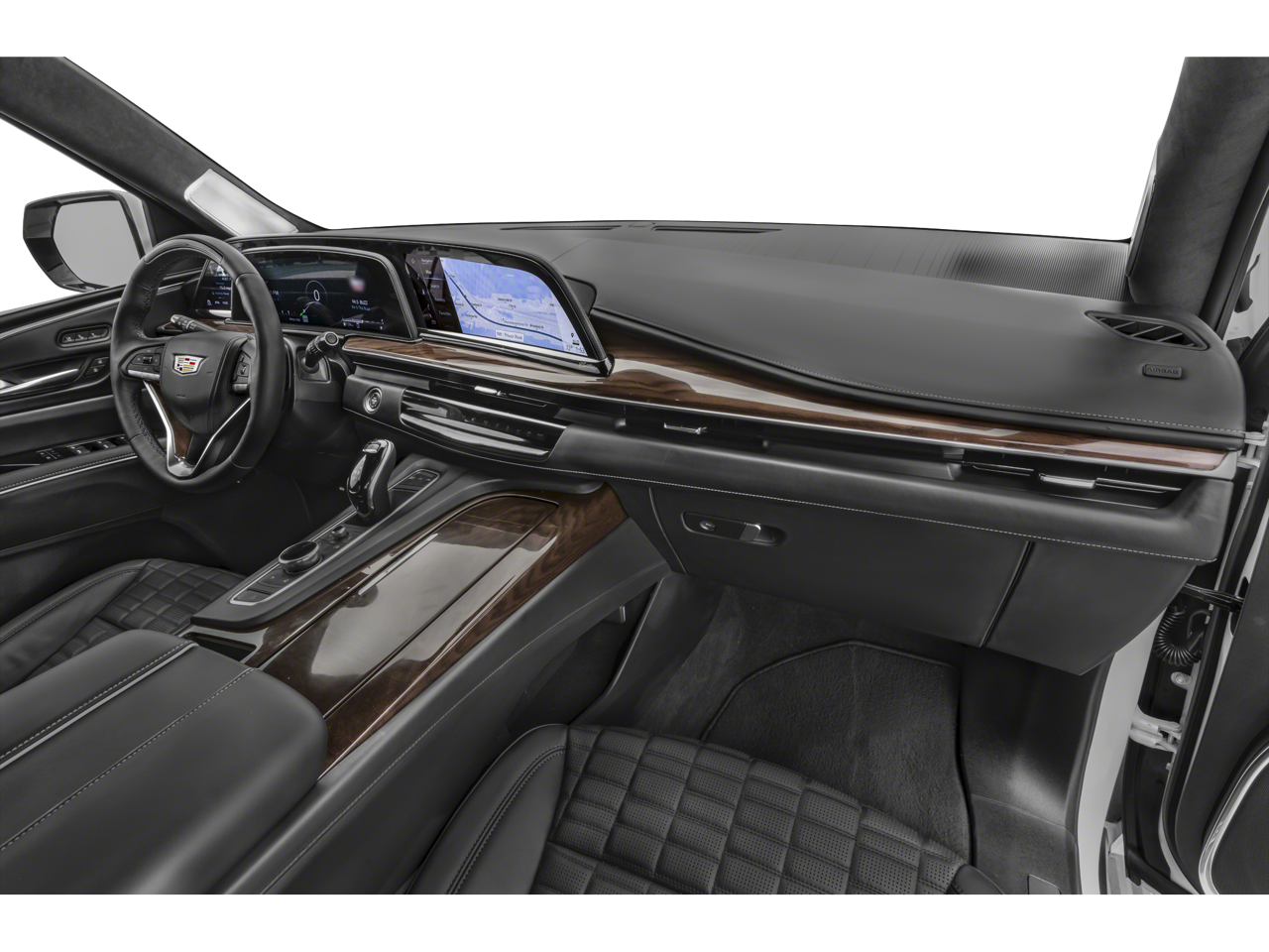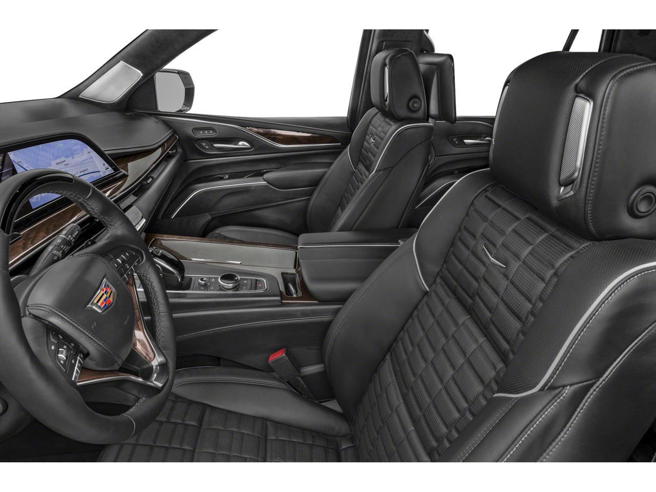 Inside, the Escalade Sport pampers you with premium leather seating, heated and ventilated front seats, and a 16.9-inch OLED infotainment display. The 19-speaker AKG Studio audio system delivers an immersive listening experience, while the Reconfigurable Full-Color Head-Up Display keeps critical information in your line of sight.