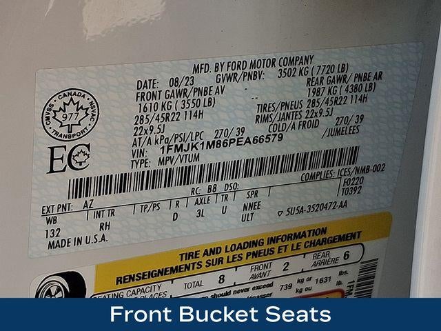 26mm Engine Radiator, 3.73 Axle Ratio, 360-Degree Camera w/Trailer Reverse Guidance, Auto High-beam Headlights, Auto-dimming Rear-View mirror, Continuous Controlled Damping (CCD), Equipment Group 600A Standard Package, Exterior Parking Camera Rear, Front Bucket Seats, Heated door mirrors, Heated front seats, Heated rear seats, Heated steering wheel, Heavy-Duty Trailer Tow Package, Htd/Ventilated Prem Lthr Front Captain's Chairs (DISC), Integrated Trailer Brake Controller, Leather steering wheel, Memory seat, Navigation system: Connected Navigation, Pedal memory, Power door mirrors, Power Liftgate, Power moonroof, Pro Trailer Backup Assist, Radio: B&O Unleashed Sound System by Bang & Olufsen, Rain sensing wipers, Remote keyless entry, SiriusXM w/360L, SYNC 4 w/Enhanced Voice Recognition, Ventilated front seats, Wheels: 22 12-Spoke Polished Aluminum.