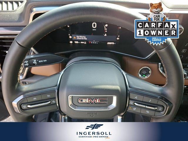 Beyond its exceptional capabilities, the Canyon AT4 also delivers unparalleled comfort and convenience. Enjoy the luxurious Jet Black/Timber perforated leather-appointed seating, ventilated front seats, and a heated steering wheel for a truly premium driving experience. The advanced technology features, including the 11.3 diagonal Premium GMC Infotainment System, Wireless Apple CarPlay/Android Auto, and Multicolor Head-Up Display, keep you connected and informed on the go.