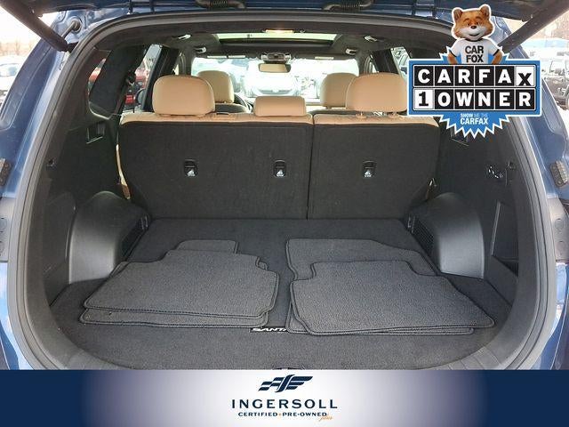 The Santa Fe Calligraphy also offers exceptional performance, with its 2.5L I4 engine and Shiftronic AWD system providing a seamless and confident driving dynamics. With an EPA-estimated 21 mpg in the city and 28 mpg on the highway, this SUV delivers impressive fuel efficiency to complement its impressive capabilities.