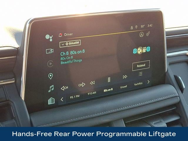 10-Way Power Driver & Passenger Seat Adjusters, 1st & 2nd Row Color-Keyed Carpeted Floor Mats, 2-Speed Active Electronic AutoTrac Transfer Case, 2nd Row Pwr Release 60/40 Split-Folding Bench Seat, 3rd Row 60/40 Power-Folding Split-Bench, Apple CarPlay/Android Auto, Auto High-beam Headlights, Auto-Dimming Inside Rear-View Mirror, Black Tubular Assist Steps, Bose 9-Speaker Stereo Audio System Feature, Bright Front & Rear Door Sill Plates, Color-Keyed Carpeting Floor Covering, Driver & Front Outboard Passenger Airbags, Driver Alert Package, Enhanced Driver Information Center, Floor Console w/Storage Area, Front High-Approach Angle Fascia, Hands-Free Rear Power Programmable Liftgate, HD Surround Vision, Heated 2nd Row Outboard Seats, Heated Driver & Front Passenger Seats, Heated Steering Wheel, Heavy-Duty Air Filter, Hill Descent Control, Infotainment Display, Lane Change Alert w/Side Blind Zone Alert, LED Daytime Running Lamps, Luxury Package, Memory Settings, Memory Settings For Driver, Navigation System, Outside Heated Power-Adjustable Mirrors, Power Liftgate, Power Tilt & Telescopic Steering Column, Preferred Equipment Group 2Z7, Rain sensing wipers, Rear Cross Traffic Alert, Rear Pedestrian Alert, Red Recovery Hooks, Remote Start, SiriusXM w/360L, Universal Home Remote, Wheels: 20 x 9 Machined Aluminum, Wireless Charging, Wrapped Steering Wheel.