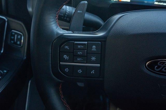 Step inside the Raptor's spacious and well-appointed cabin, and you'll be surrounded by a wealth of comfort and convenience features. The heated and ventilated front seats, dual-zone automatic climate control, and premium B&O sound system create a luxurious environment, while the Heads-Up Display and SYNC 4 infotainment system keep you connected and informed on the go.