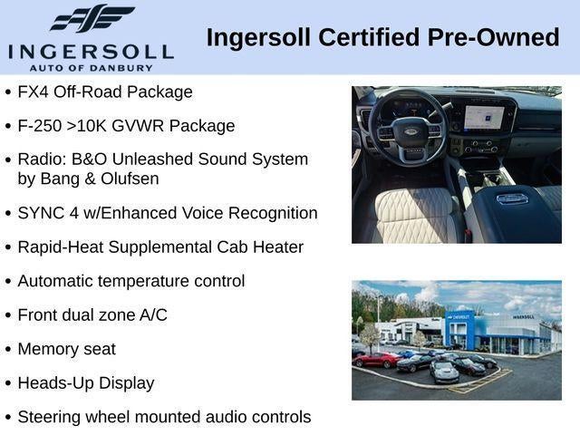 Elevate your driving experience with the premium features of the F-250SD Limited, including a state-of-the-art B&O Unleashed Sound System, SYNC 4 with Enhanced Voice Recognition, and a Heads-Up Display that puts critical information right in your line of sight. Enjoy the ultimate in comfort and convenience with heated and ventilated front seats, a heated steering wheel, and dual-zone automatic climate control.