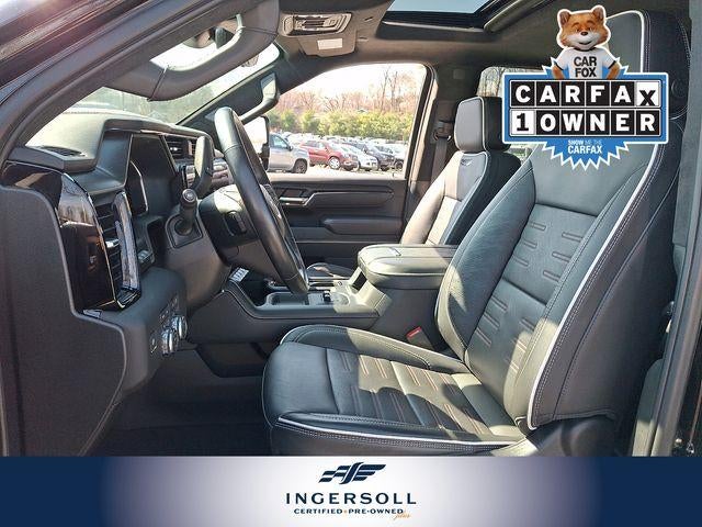 Comfort and style are paramount in the Sierra 2500HD AT4X, with features like Heated and Ventilated Front Seats, Heated Rear Seats, and a Heated Steering Wheel. The Onyx Black exterior exudes a bold and confident presence, complemented by the Gloss Black accents and the Spray-On Bedliner with the AT4 logo.
