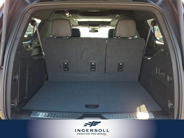 The Yukon XL AT4's striking black exterior exudes a commanding presence, while the premium interior pampers you and your passengers with perforated leather seating, heated and ventilated front seats, and a heated steering wheel. The spacious cabin offers ample room for up to eight passengers, with a 60/40 power-folding third-row seat for unparalleled versatility.
