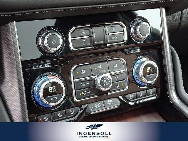 Indulge in the Yukon XL Denali Ultimate's state-of-the-art amenities, including a Bose Performance Series Sound System with 18 speakers, a Dual-Pane Panoramic Power Sunroof, and a 15-inch Diagonal Multi-Color Head-Up Display. Experience the ultimate in comfort and convenience with features like Heated and Ventilated Front Seats, Heated Rear Seats, and a Hands-Free Power Programmable Rear Liftgate.
