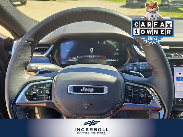 Beneath the elegant exterior, this Jeep is powered by a potent 2.0L I4 DOHC engine paired with an 8-speed automatic transmission and robust 4-wheel-drive system. With its impressive hybrid capabilities, the Grand Cherokee 4xe delivers exceptional efficiency without compromising on performance.