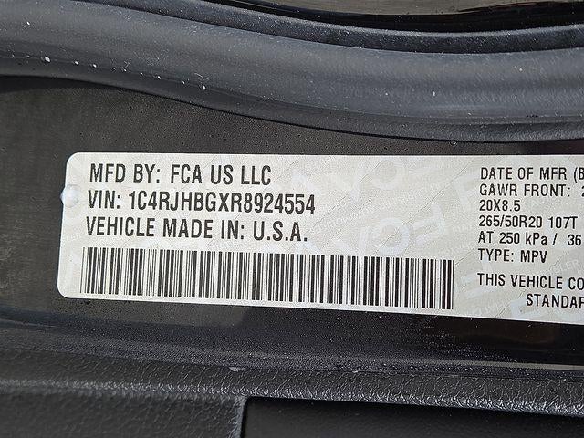 6 Speakers, AM/FM radio: SiriusXM with 360L, Auto High-beam Headlights, Capri Leatherette Seats, Garage door transmitter, Heated door mirrors, Heated front seats, Heated rear seats, Heated steering wheel, Memory seat, Navigation System, ParkView Rear Back-Up Camera, Power door mirrors, Power Liftgate, Quick Order Package 23E, Radio: Uconnect 5 Nav w/10.1 Display, Remote keyless entry, Split folding rear seat, Wheels: 18 x 8 Polished/Painted Aluminum.