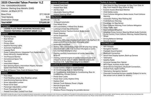 Sterling Gray Metallic 2025 Chevrolet Tahoe Premier 4D Sport Utility 4WD EcoTec3 5.3L V8 10-Speed Automatic with Overdrive