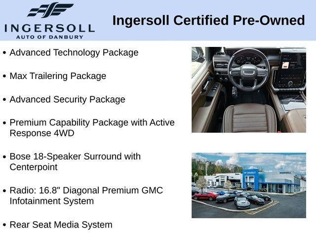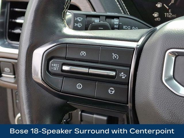 Step inside the cabin and you'll be enveloped in the epitome of refinement. Luxurious Full Grain Leather Seats, coupled with Perforated Heather and Ventilated Seating, offer unparalleled comfort. The Bose 18-Speaker Surround with Centerpoint audio system delivers an immersive listening experience, while the 16.8 Diagonal Premium GMC Infotainment System keeps you connected and entertained.